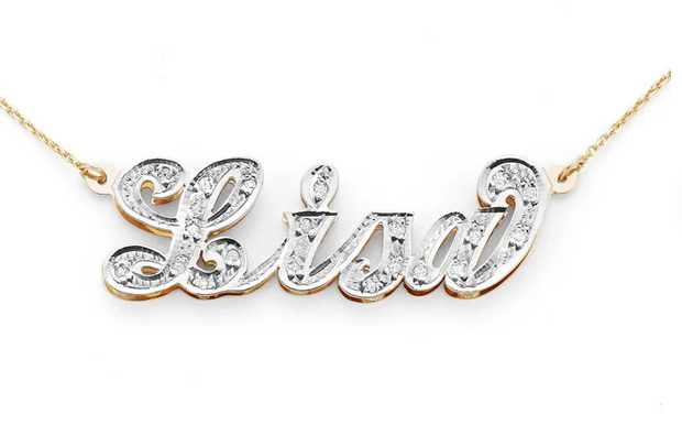 This 10K-14K Personalized Name Necklace 3D Double plated offers a unique, customizable way to wear your name. The double plating process provides strength and durability, ensuring a long-lasting product. Perfect for retail stores, this necklace makes a great statement piece