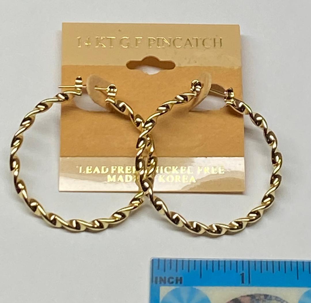 14 K Gold Filed Pincatch Earrings twisty 1 1/2"