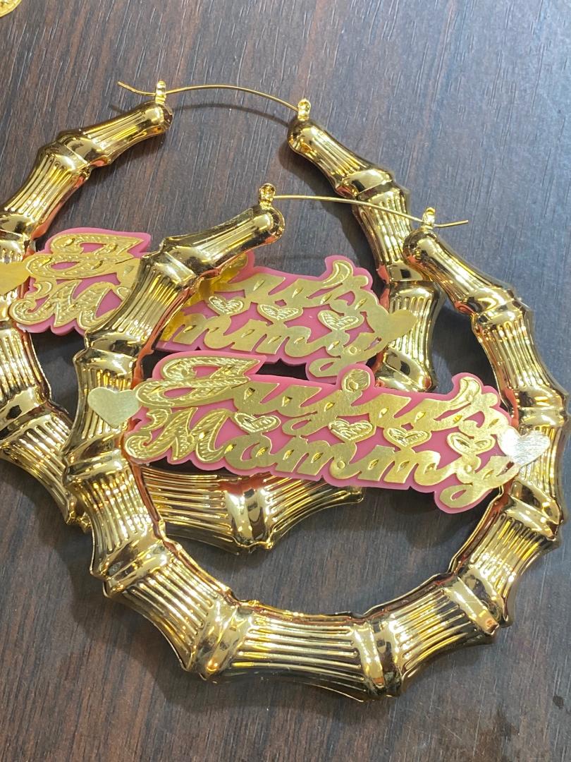 10k real gold bamboo name earrings 3" or 2 1/4 "