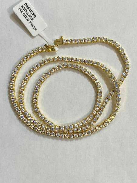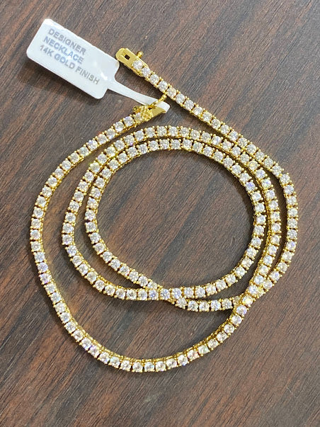 14k Gold Plated 1 Row Round Iced CZ Tennis Necklace 18" or 20"