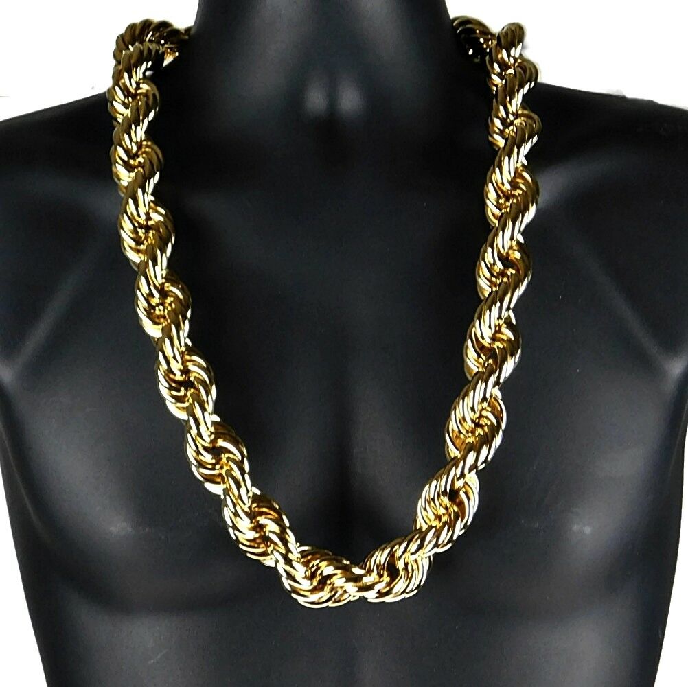 14K Gold Plated Necklace Rope Chain 34" Inch Length BIG FAT Thick 25mm Hip Hop