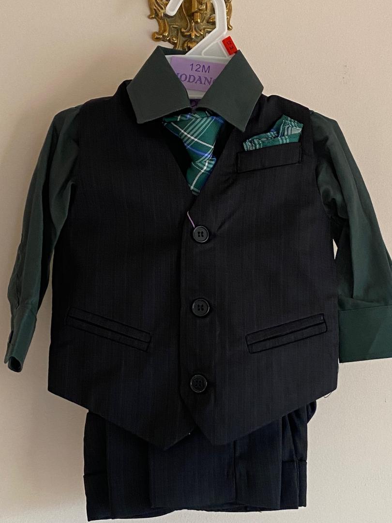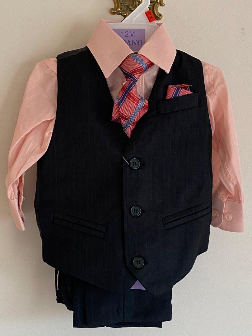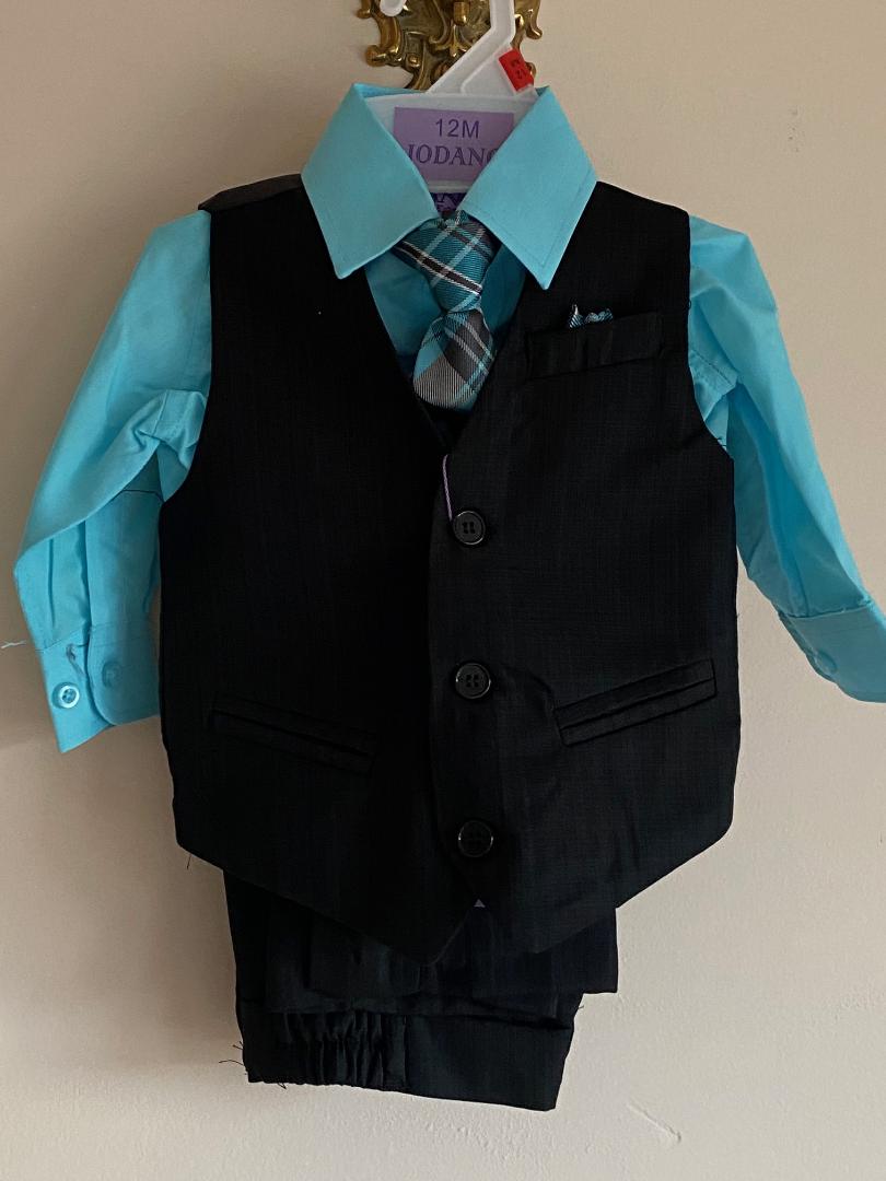 Dress your little one in style with this 4-piece formal outfit set. Perfect for weddings, christenings, and special occasions, the tuxedo suit features a sophisticated design that will have your baby boy looking sharp and elegant. Includes jacket, shirt, pants, and bowtie for a complete formal look.