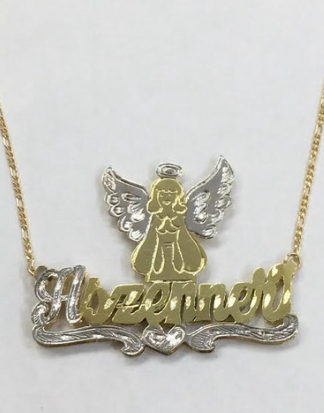 gold overlay Double Name Plate Necklace 3D Personalized angel or any pic