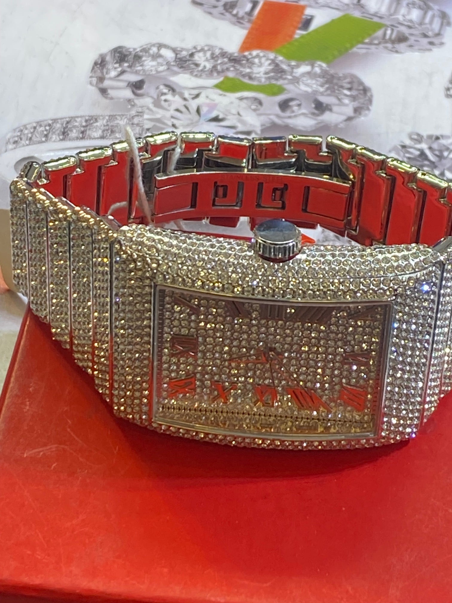 Men Rectangle Big Face Iced up Bezel 40mm CZ white tone bling hip hop Watch