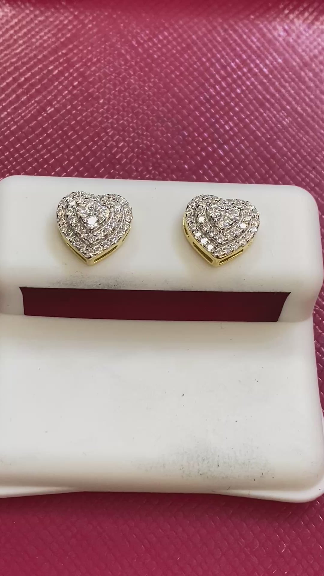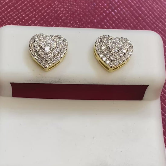 Moissanite Studs heart Cluster Earrings Real 14k Gold Over 925 Silver 9mm