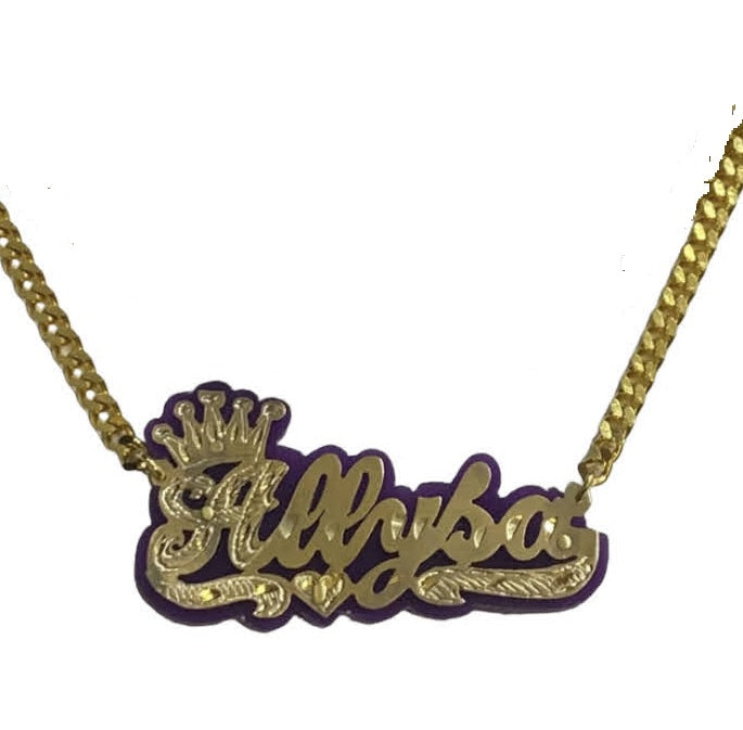 gold plated Personalized 3D Double Plate Name Necklace / crown onyx