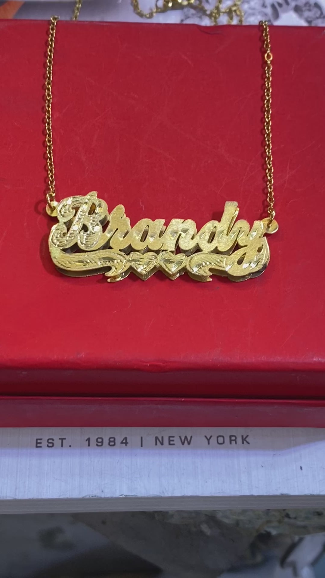 GP Name Plate Pave script letter gold plated double plated name plate with pave script letters (pave cut with Rhodium finish) (NO DIAMOND). Just spell any name up to 9 letters and we'll do the rest. Note: Only first letter will be capitalized, one name per plate. It usually takes 7-10 days for order to be delivered. Name plate is made to order and must be a final sale. It comes with FREE 18" figero chain weighs about 1.2 grams in a gift a box. * Height (Top to Bottom): Approximate ( 1/2 Inch ) * Width (Left to Right): Approximate ( 1 1/2 Inch ) * * Weight (plate): (3.5 g ) Approximate * Name Thickness: ( 3 mm ) IMPORTANT! Please Spell the Name you want in the NOTE SECTION of your payment OR EMAIL US AFTER YOU PAY We offer you FREE Beautiful Gift Box for everyone who orders.