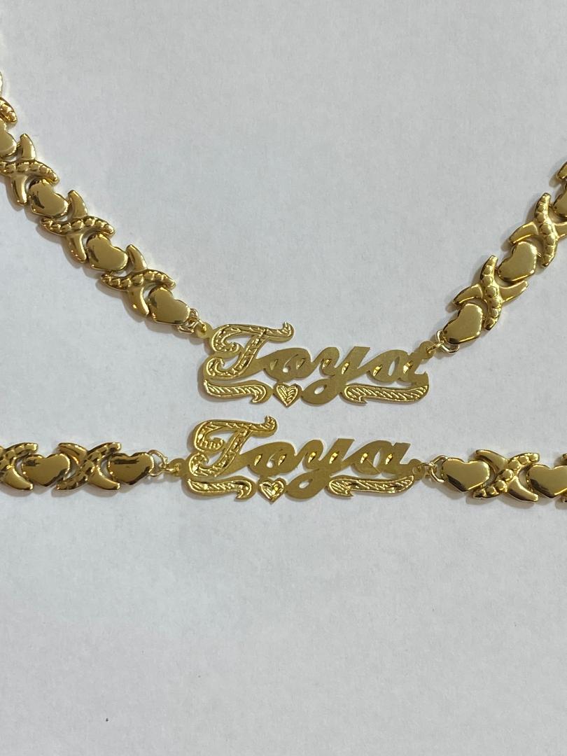 gold plated Personalized xoxo heart Name Necklace and bracelet set