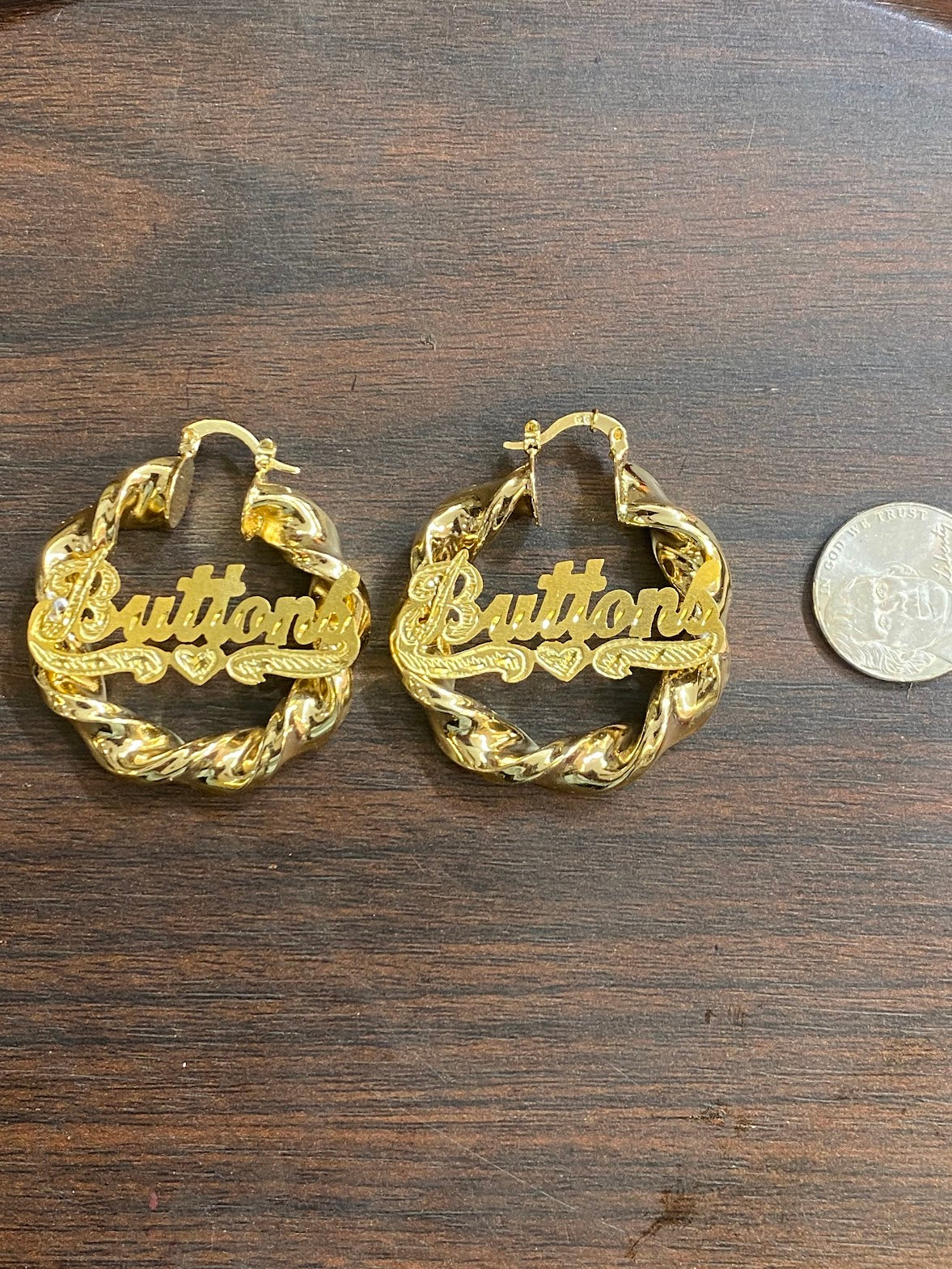 GP (GOLD PLATED)bamboo Name earring Plate Pave script letter with heart GP bamboo name earring with pave script letters with heart.(a pair) Just spell any name up to 9 letters and we'll do the rest. Note: Only first letter will be capitalized, one name per plate. It usually takes 7-10 days for order to be delivered. Name plate is made to order and must be a final sale. Gold plated bamboo name earring.
