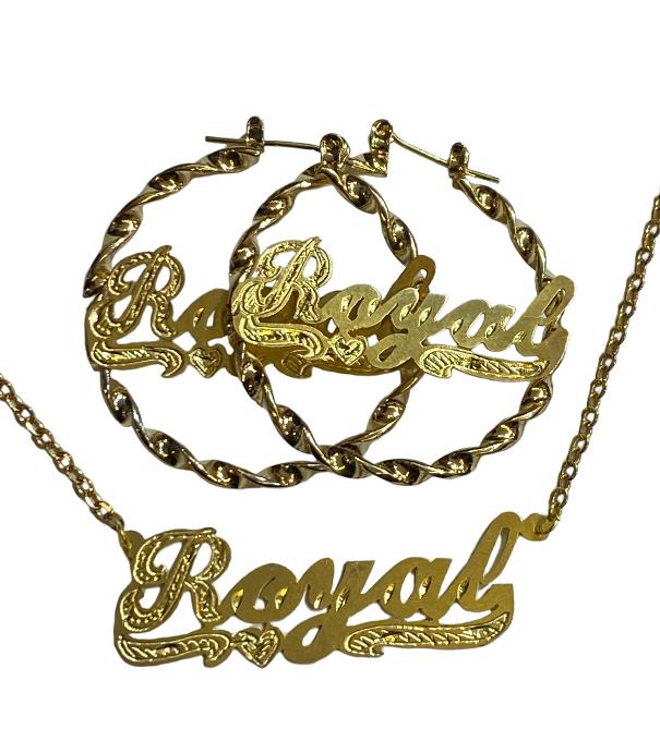 Personalized Name Necklace and twisty earring set 1 1/2 inch thin