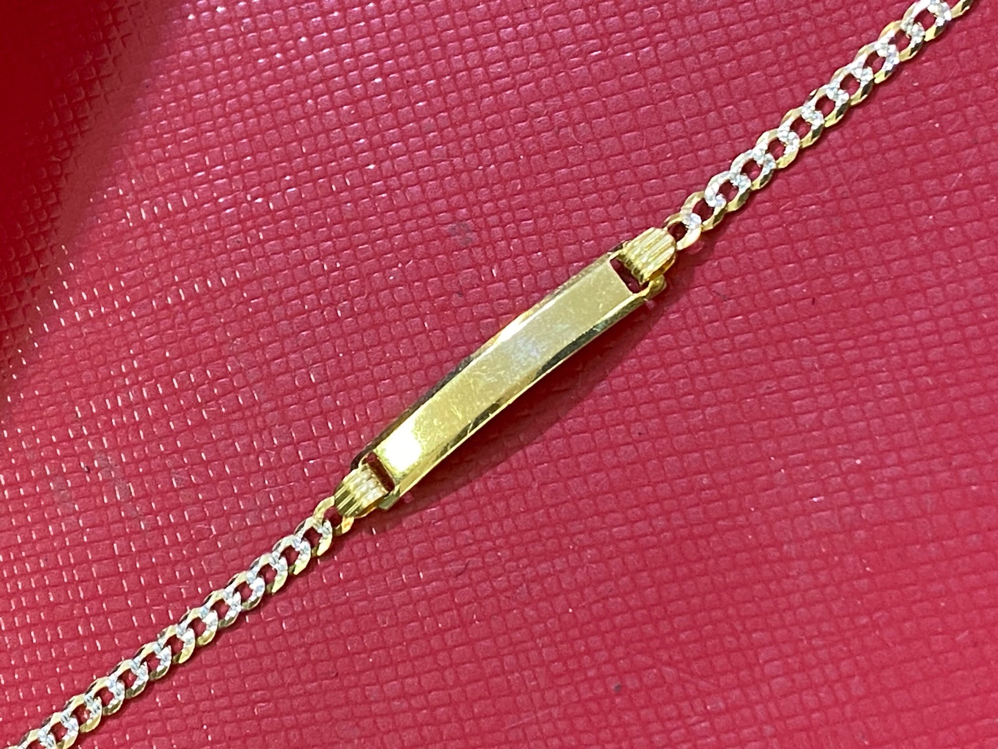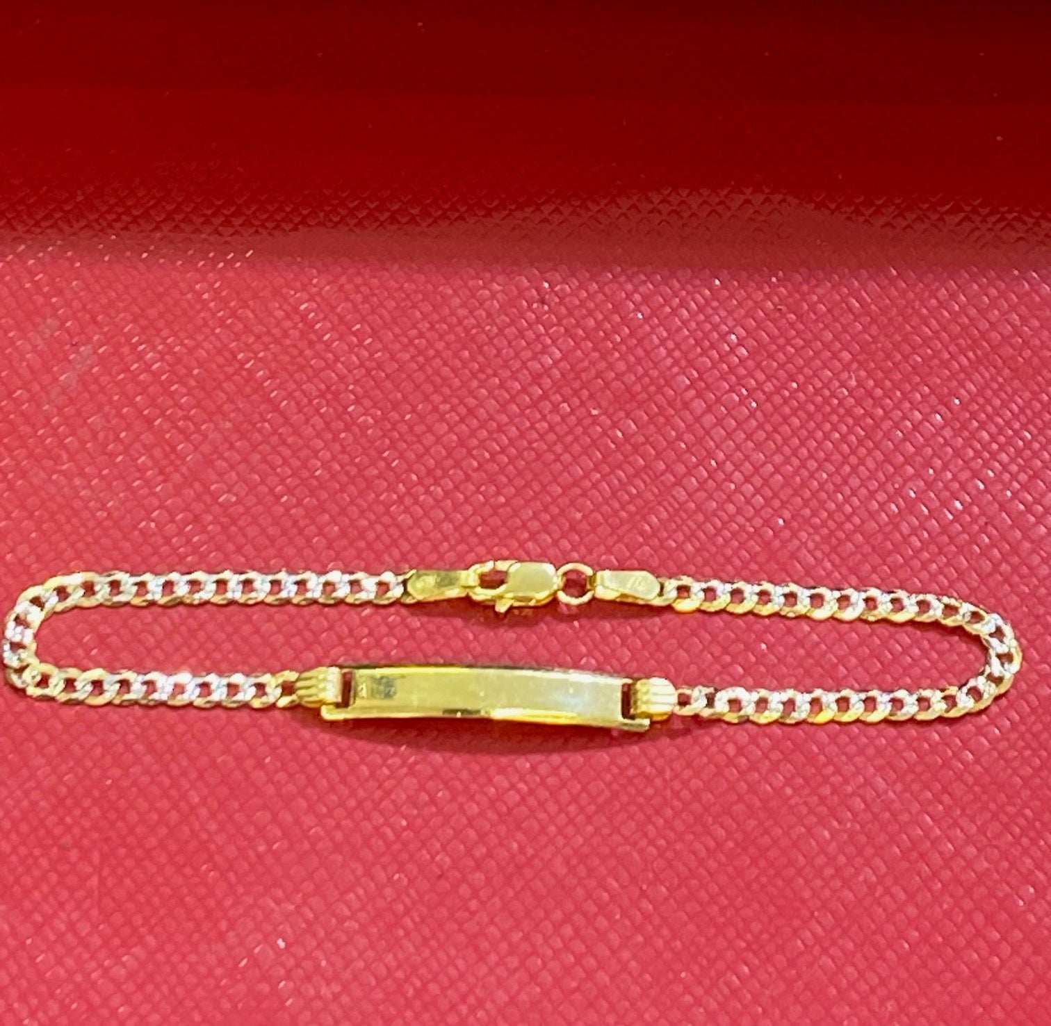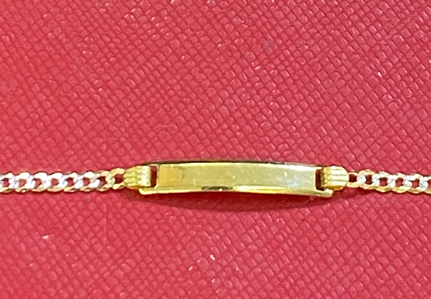 solid 14kt Gold Baby ID Bracelet With Free Engraving 5 1/2 “ cuban pave Two Tone