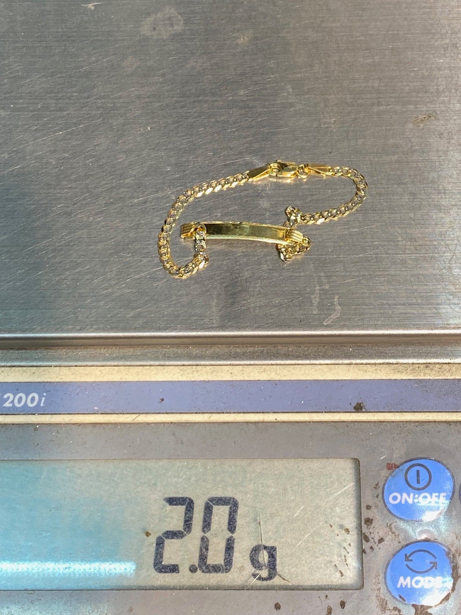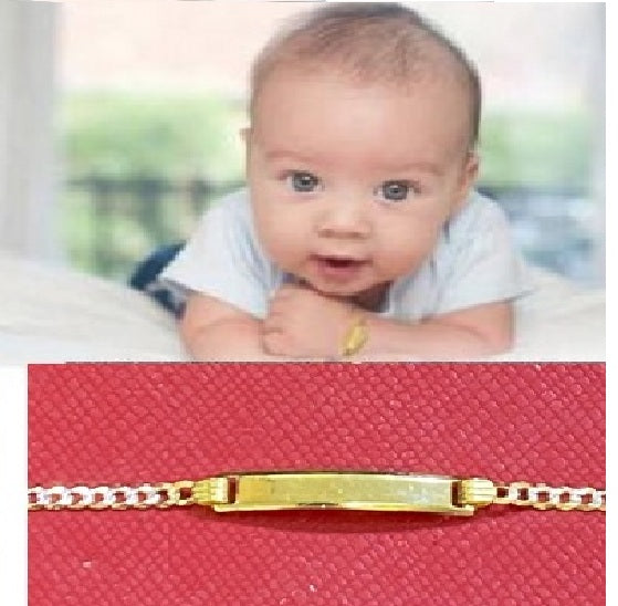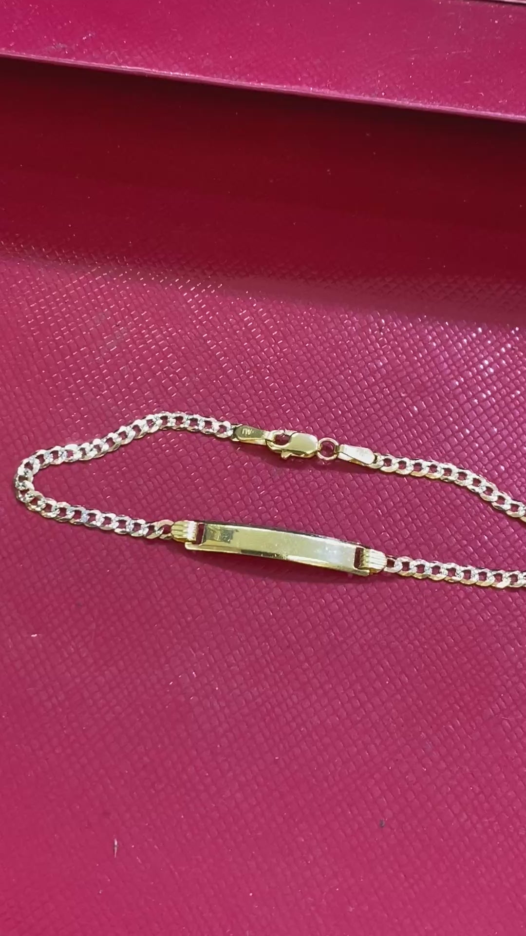solid 14kt Gold Baby ID Bracelet With Free Engraving 5 1/2 “ cuban pave Two Tone