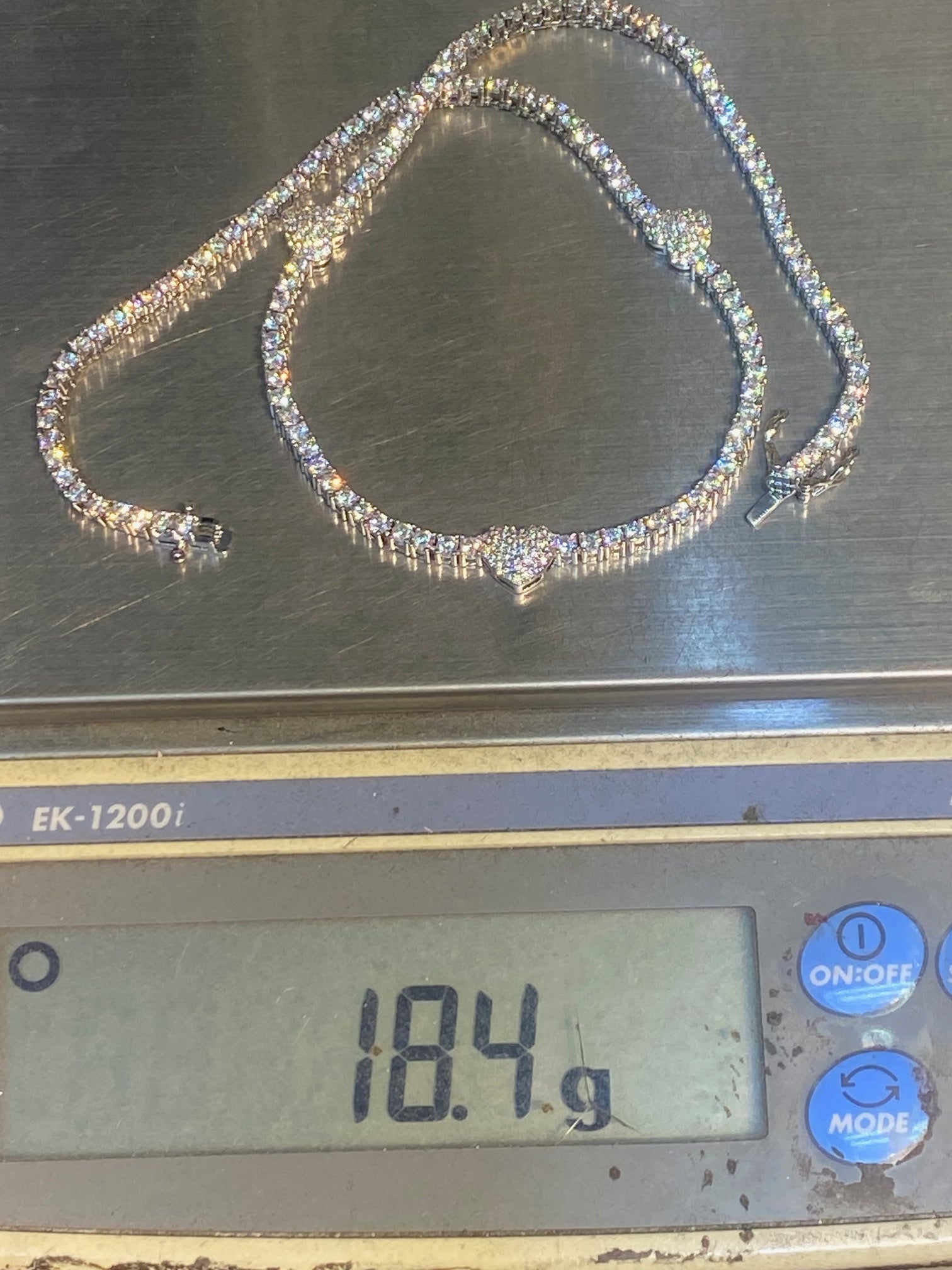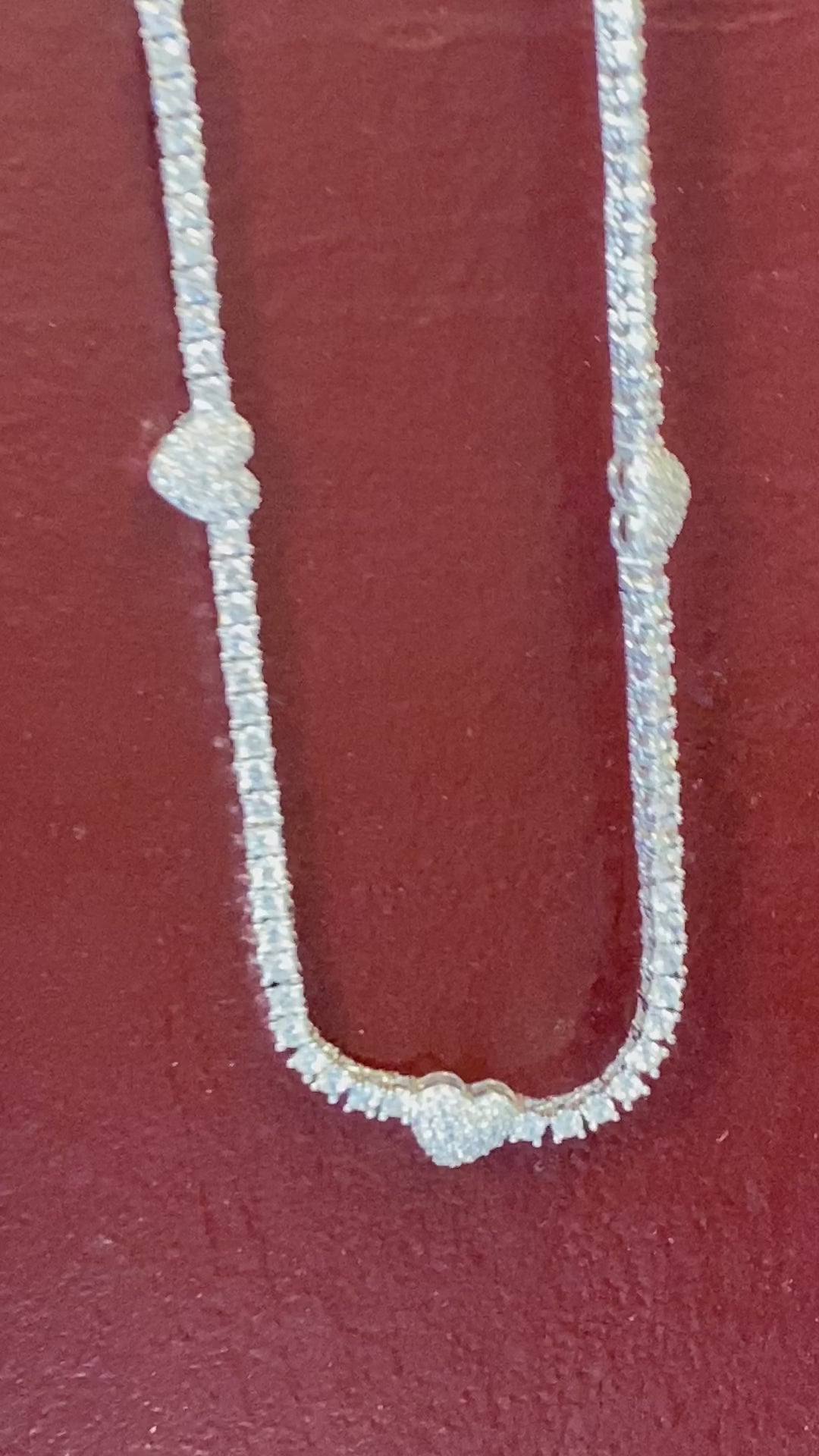 Sterling Silver Heart CZ Tennis Necklace chain 16 inch