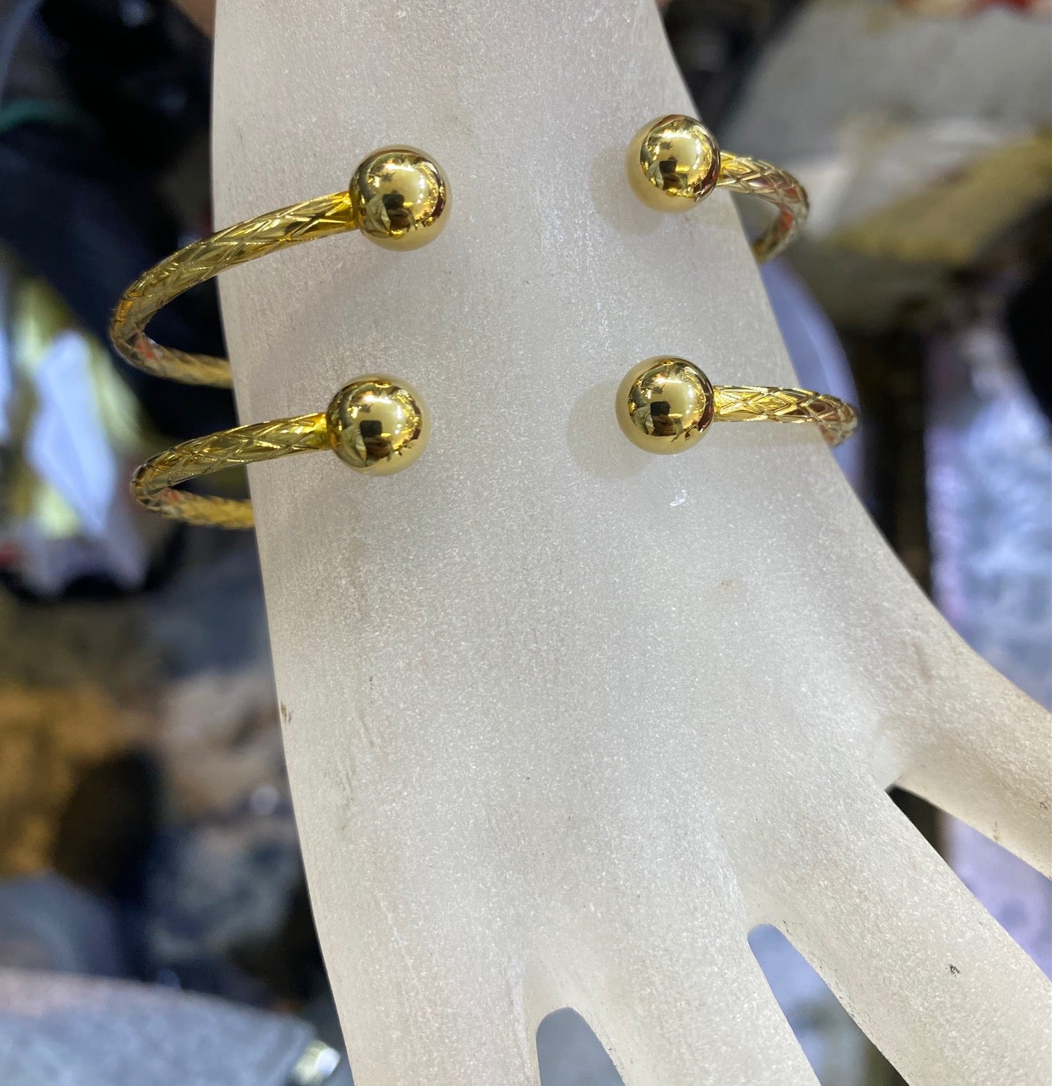 As an expert in the jewelry industry, trust our West Indian bangles in gold for their guaranteed never-tarnishing quality. Perfect for a 7 to 7.5 inch wrist, these bangles add a touch of elegance to any outfit, making them a must-have accessory for your collection.